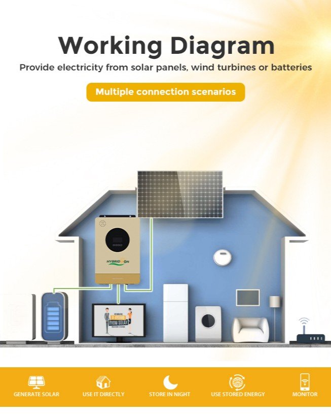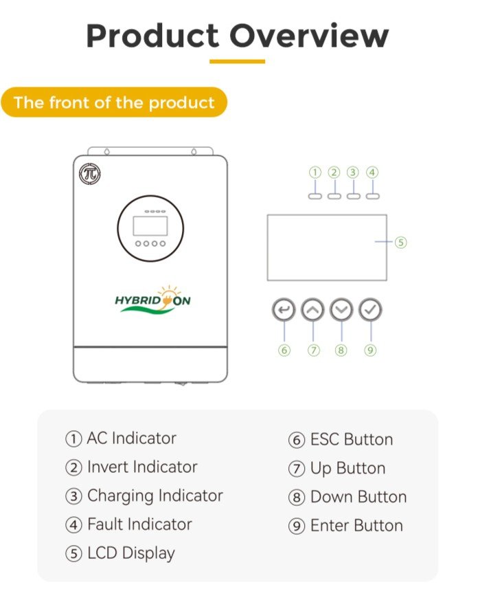 Hybridon 3.6 kW, 24 V Hybrid Solar Inverter- SINGLE PHASE — Reliable Backup Power for Home & Office