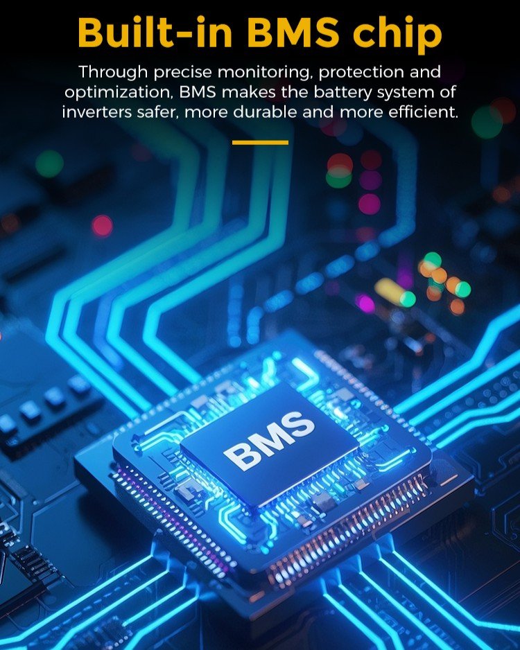 • Solar MPPT Input (if equipped): Optimizes solar panel output to charge batteries faster and run loads directly on solar when sunlight is available.