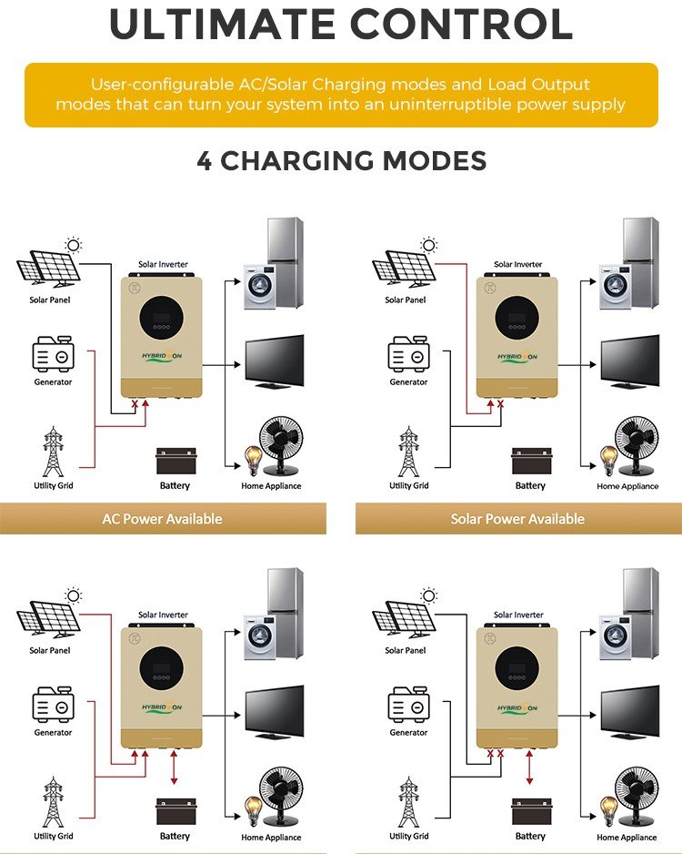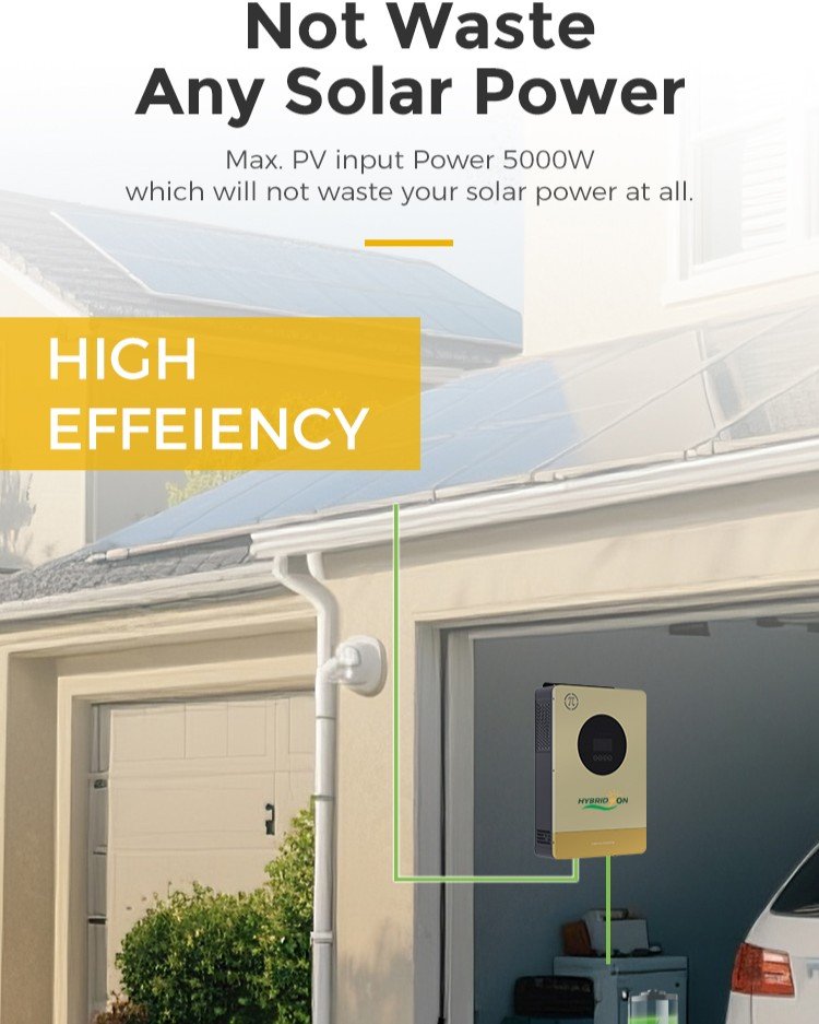 • High Efficiency Hybrid Design: Combines solar, battery and grid input — automatically switches between sources for seamless power.