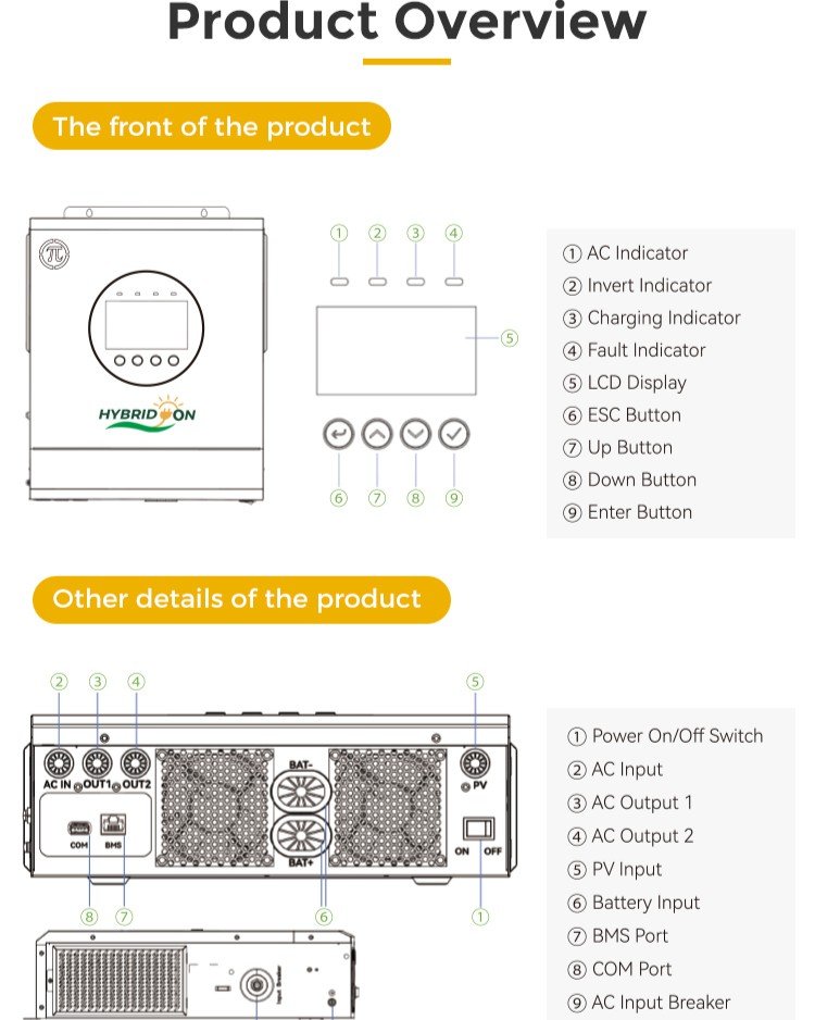 Hybridon 11KW 48V Parallel Hybrid Solar Inverter | Dual MPPT | SINGLE PHASE-High Power for Home & Commercial